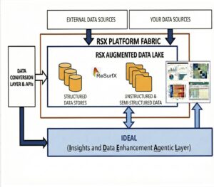 We use an augmented DATA LAKE architecture for data processing and exchange, with a thin fabric that includes data conversion features which also includes an Insights and Data Enhancement Agentic Layer (IDEAL) that leverages the recent advancements in GenAI. vysen product page depicts a product configuration with NCBI GEO database as external data which we built integrated access to in our beachhead product.
